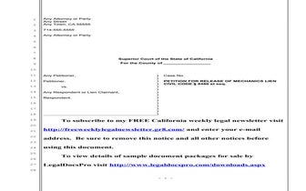 Web A Lien Release is a form that removes a lien on a property after a claimant has been fully paid. 814 Demand Letter - Notice of Intent to Lien Demand Letter - Notice of Intent to Lien Send one of Lien-Pros Notices. When forced to file a petition to release the mechanics lien you must follow certain steps before filing the petition.